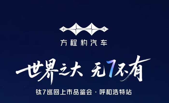 2025年9月21日,方程豹钛 7 将在呼和浩特正式上市,这款集硬派美学与非凡科技于一身的 SUV,无疑将给国内硬派 SUV 市场带来强烈冲击,重塑市场格局,引领家用越野新潮流。