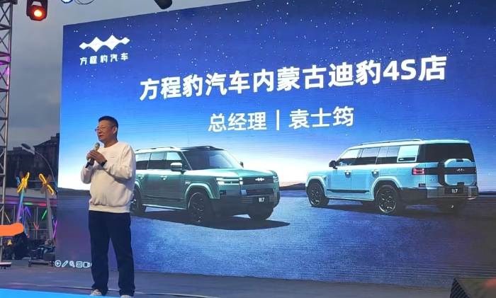 随后,方程豹汽车内蒙古迪豹 4S 店总经理袁士筠致辞。袁士筠热情欢迎各位嘉宾的到来,并表示内蒙古迪豹 4S 店将以专业、贴心的服务,为消费者提供关于方程豹钛 7 的全方位服务,让每一位选择钛 7 的车主都能感受到优质的购车与用车体验。他坚信,钛 7 凭借其硬派美学与非凡科技,必将在内蒙古汽车市场取得优异成绩。