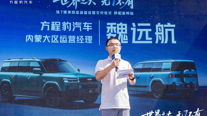 活动伊始,方程豹汽车内蒙大区运营经理魏远航登台致辞。他表示,钛7火爆程度超出预期,总部上市后用户进店量增长4-5倍,订单表现也十分喜人,部分单店超过100+台,可以说,凭借着出色的热销表现和市场热度,“大五座天花板”钛7正成为家用硬派全新品类超值之选。