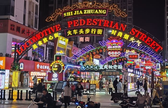 傍晚时分,我们抵达石家庄。办理完入住手续后,特意驱车前往当地有名的火车头步行街。刚驶入街区周边,CS55PLUS 的智能泊车辅助功能便派上了用场,在人流密集的商圈轻松找到车位并完成自动泊车。漫步在步行街上,复古火车头景观与新潮店铺相映成趣,美食摊位的香气弥漫在空气中,时尚潮流与市井烟火气在此完美交融。我们穿梭在热闹的人群中,品尝了烤冷面、驴肉火烧等特色小吃,彻底放松了长途驾驶的紧绷神经。当晚休整完毕,满心期待次日的上市活动。