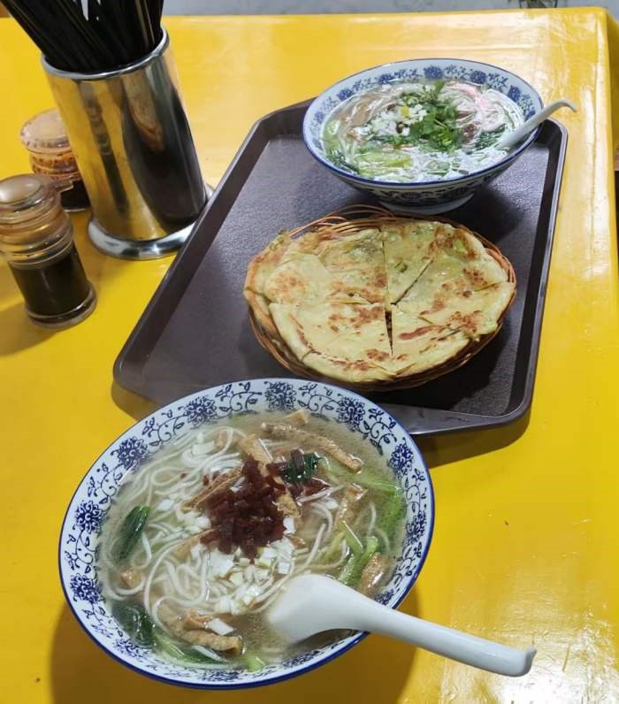 夜幕降临时,小雨淅淅沥沥落下,我们顺利抵达忻州古城。预订的民宿恰在秀容书院脚下,停好车后,踏着湿润的青石板路走进古街,灯火阑珊的街巷在雨雾中更显诗意,繁华的市井气息扑面而来。晚餐选在口碑极佳的五台烩菜馆,店内座无虚席,我们点了几道当地特色菜,分量十足的地道菜肴实惠又美味,彻底驱散了旅途的疲惫。当晚在民宿休整,为次日行程养精蓄锐。