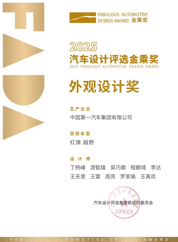 汽车设计评选金乘奖是由中国汽车技术研究中心有限公司联合行业权威机构、高校等共同打造的国内汽车工业设计领域专业权威奖项,致力于推动行业设计创新与技术进步。其中,外观设计奖表彰在汽车外部造型上实现美学突破与功能创新的杰出车型,是对车型外在形态与功能高度融合的专业认可与权威肯定。